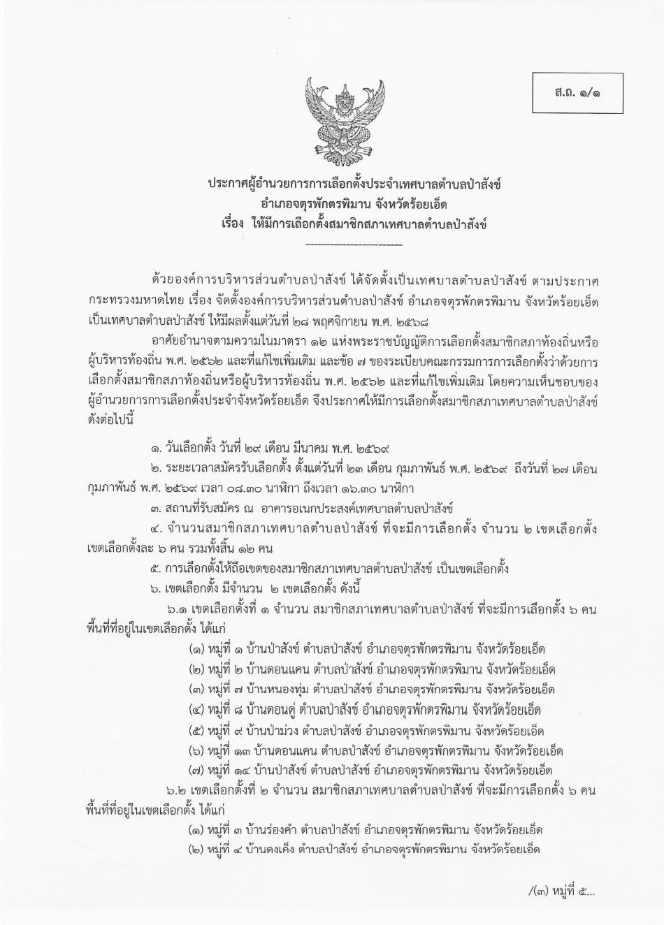 เทศบาลตำบลป่าสังข์ อำเภอจตุรพักตรพิมาน จังหวัดร้อยเอ็ด