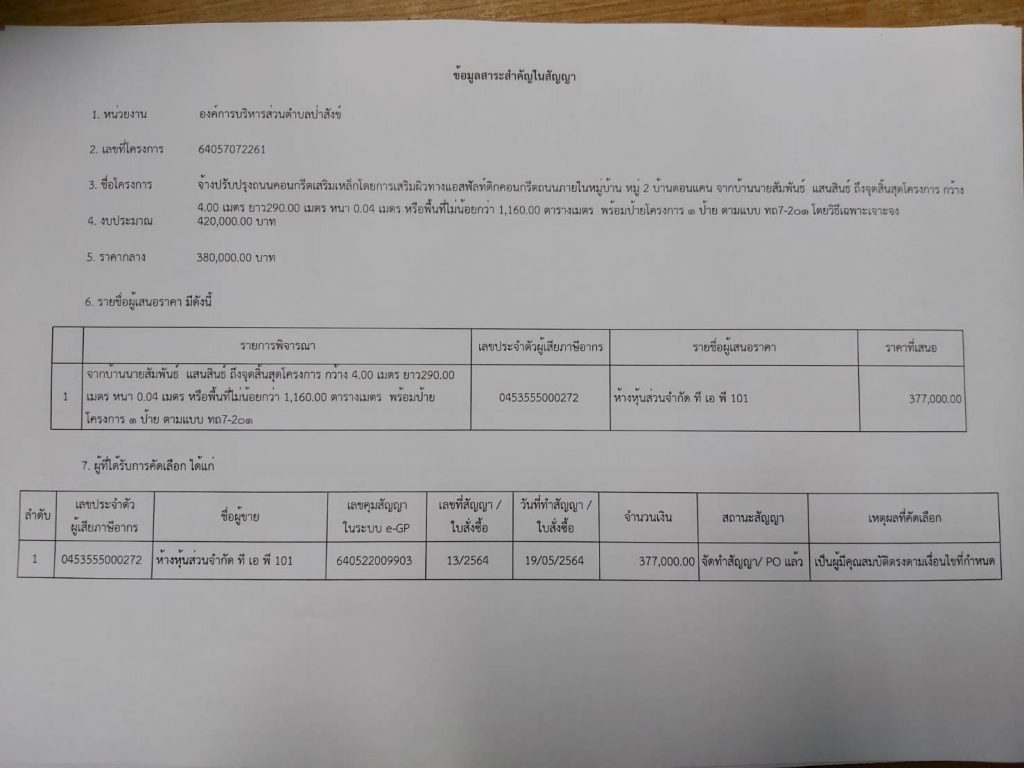 ข้อมูลสาระสำคัญในสัญญาตามแบบ สขร 1